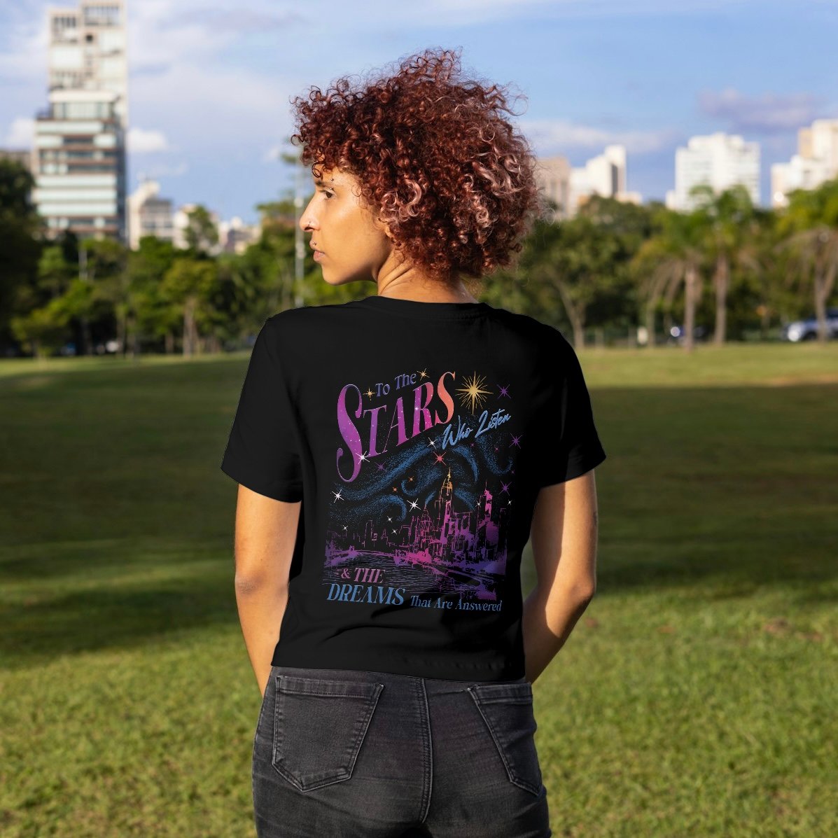 Si eres fan de Sarah J. Maas y alguna vez soñaste con perderte en la Corte de los Sueños, esta camiseta es para ti. Con un diseño exclusivo inspirado en A Court of Thorns and Roses, reúne las frases y símbolos que han hecho de Velaris el refugio favorito de lectoras y soñadoras.