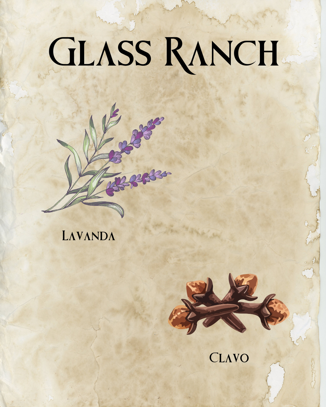 Calma y protección en equilibrio. Una vela de soja natural para el descanso y la limpieza energética.Glass Ranch es equilibrio entre calma y protección. La lavanda relaja y suaviza la mente, mientras el clavo aporta un fondo especiado y protector que limpia el ambiente energéticamente. Ideal para rituales nocturnos, descanso consciente y armonización del hogar, su aroma es elegante, ligeramente herbal y profundamente reconfortante.