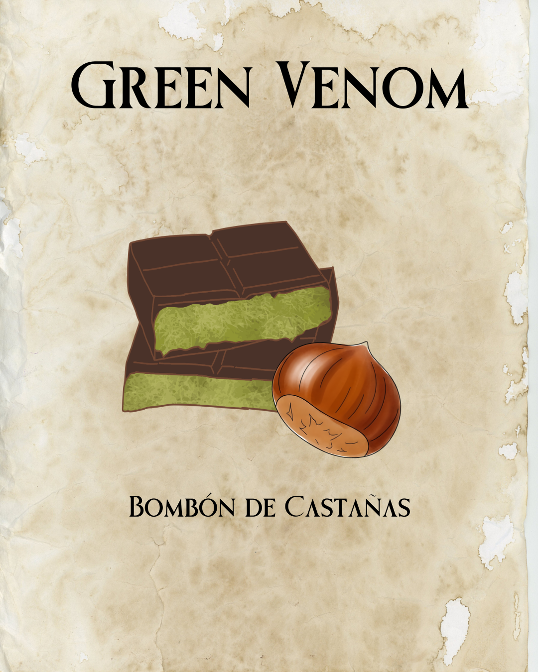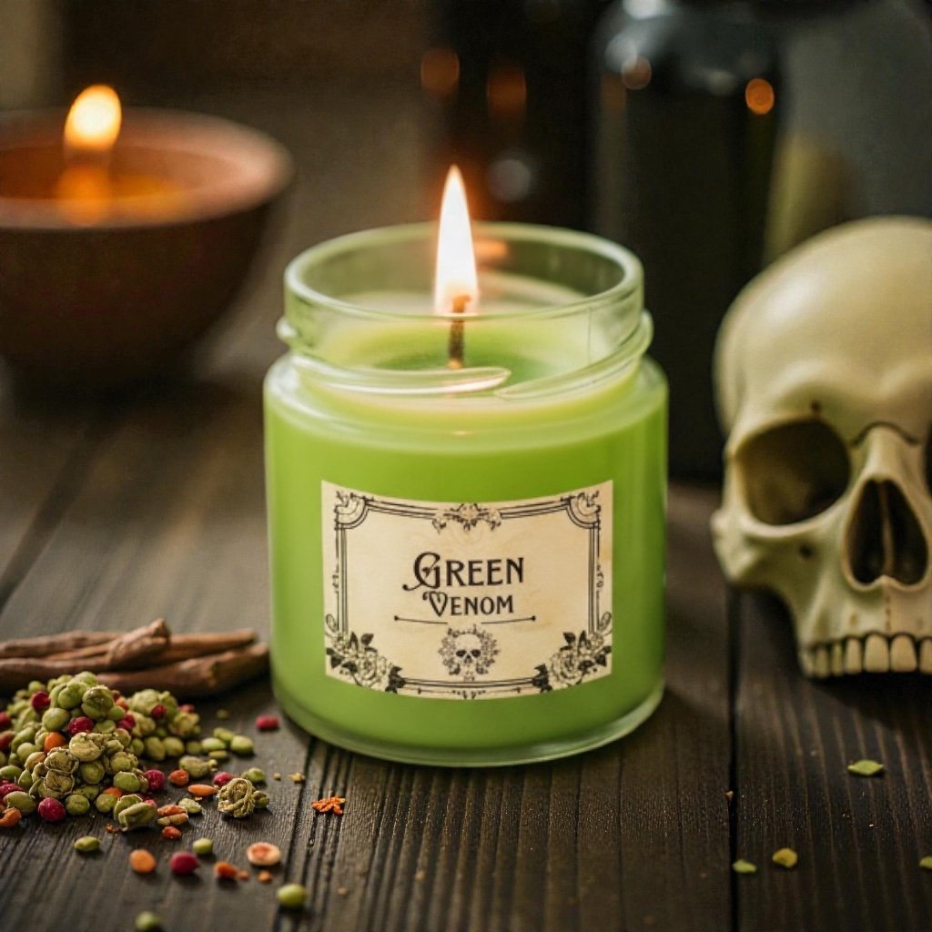 Green Venom es profundidad, misterio y tentación. Su aroma de bombón de castañas es cálido, oscuro y gourmand, evocando bosques antiguos, magia prohibida y rituales realizados a la luz de una sola llama.