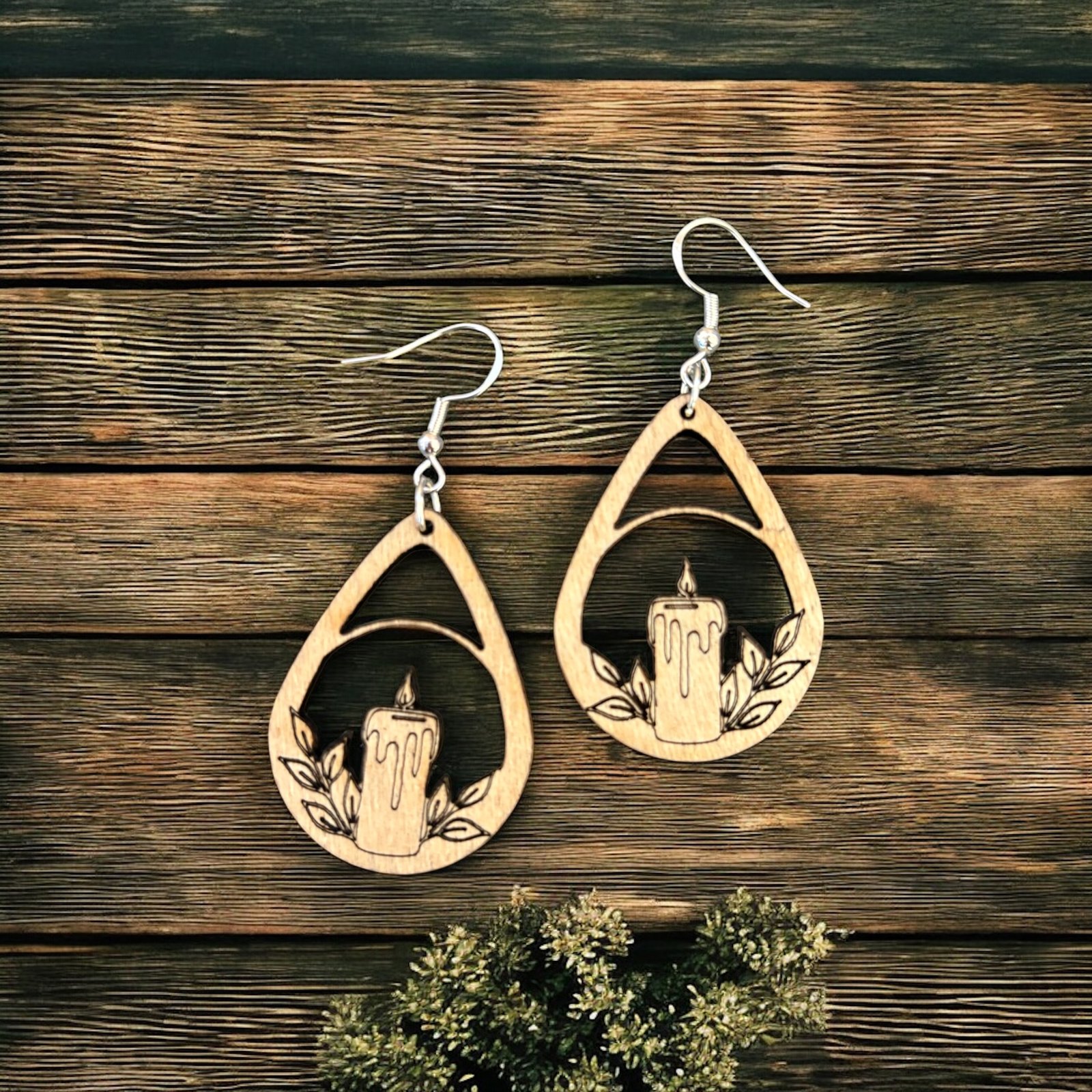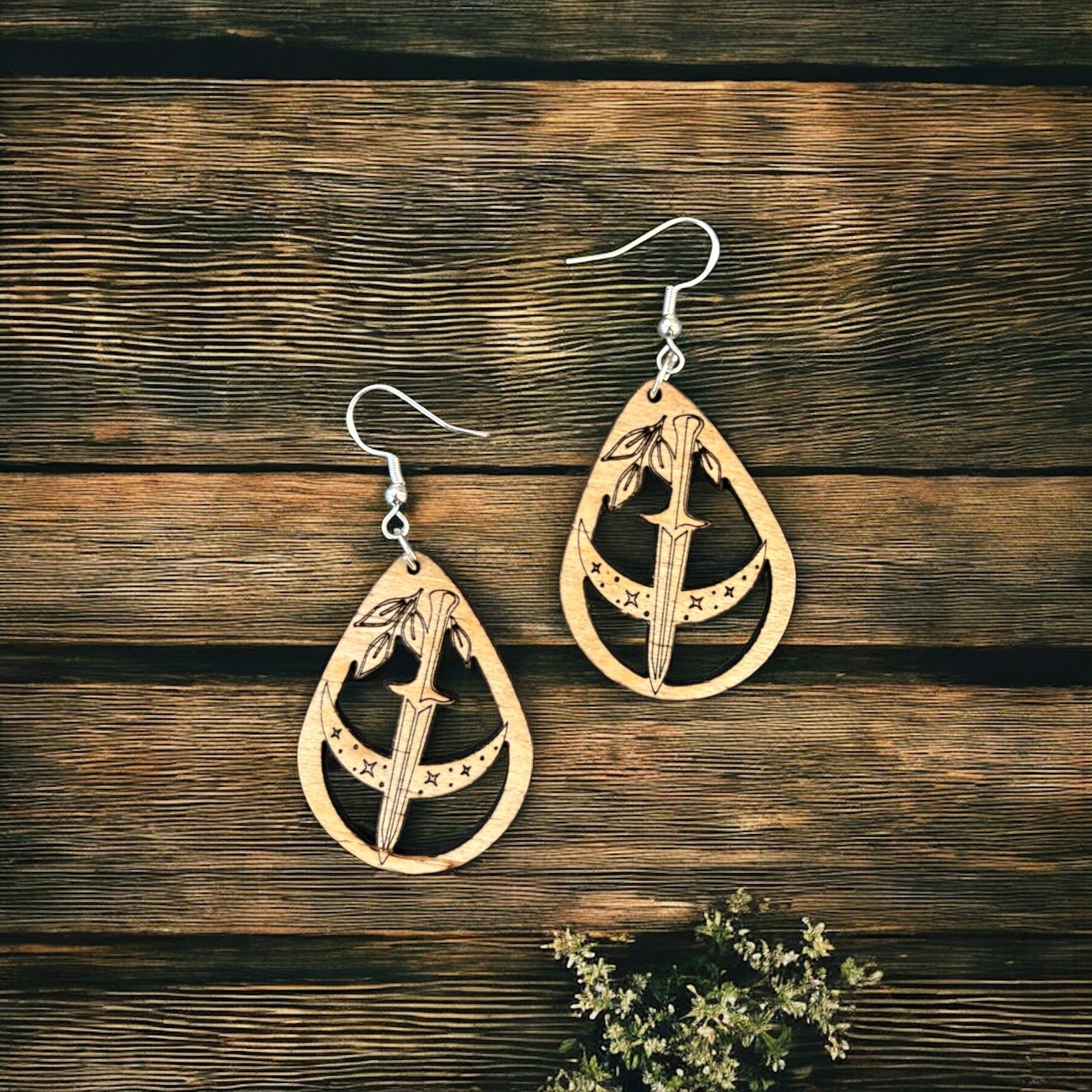Pendientes de madera pirograbados – Inspirados en la magia de las brujas