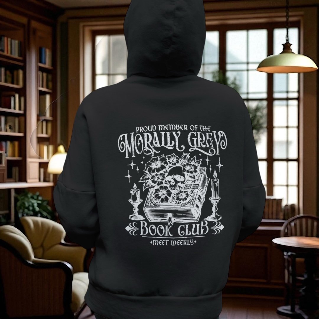 La sudadera literaria “Enemies to Lovers / Morally Grey Book Club” es la prenda definitiva para los amantes del romantasy, los clichés literarios y la estética oscura. Disponible en dos versiones exclusivas, ambas pensadas para que muestres tu pasión lectora: