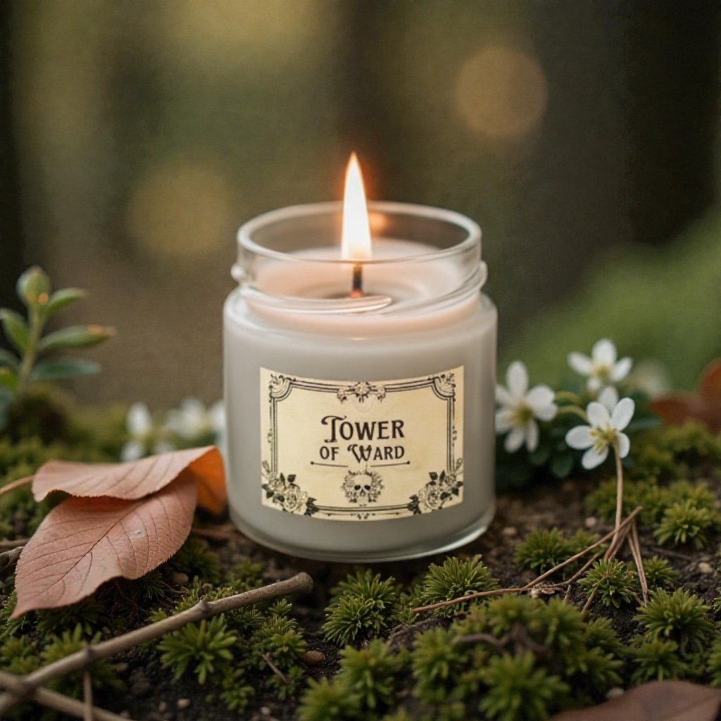 Tower of Ward es una vela natural de soja (250 ml) con notas de té verde y pepino. Un aroma fresco y equilibrado para calma, enfoque y protección suave.